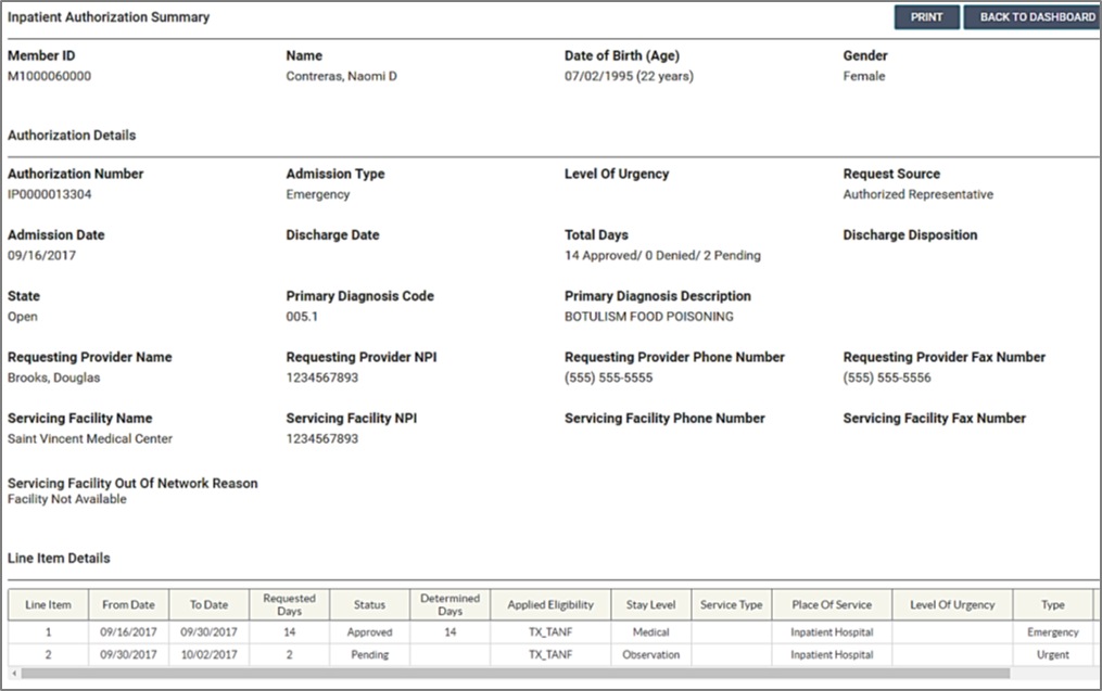 Viewing authorization details