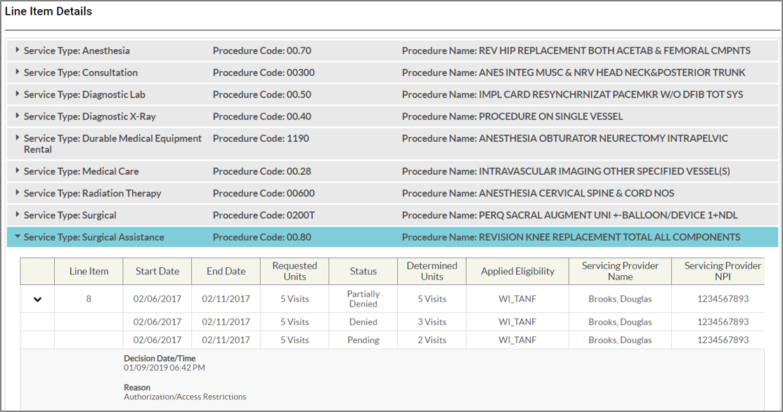 Viewing authorization details